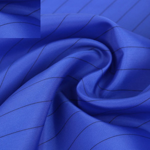 1.日本鐘紡導電絲,100D*100D,1/2斜紋,經(jīng)緯密度165*89,導電絲間隔0.5CM,克重:120GSM,表面阻值10的6-7次方Ω,防塵率80%-90%,電荷密度1.2μC/m2,摩擦電壓<300V,適用等級Class10000。